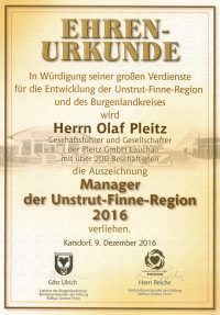 erhielt die Firma PLEITZ GmbH diverse Auszeichnungen u.a.: